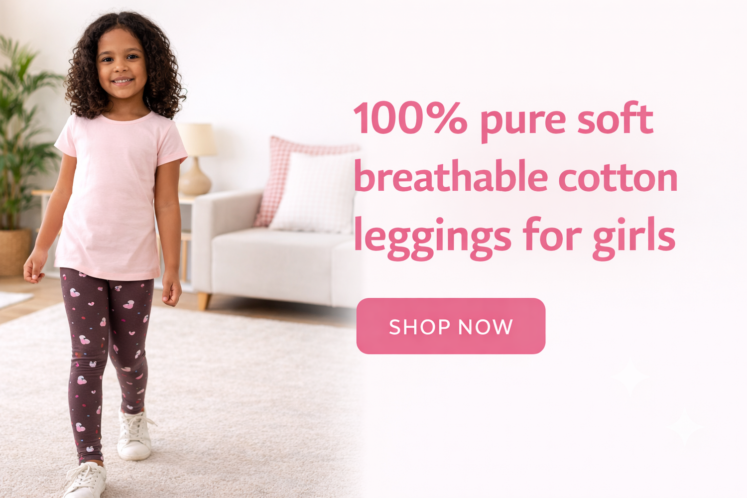 YAKSHI Girls Cotton Legging 220 GSM | Cute Birds Print, Light Pink Soft | Stretchy Everyday Wear Pants
